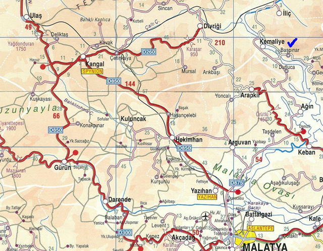 Malatya,Sıvas, Erzincan yollarından birinden